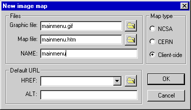 Displays the New image map dialog box and allows you to create a new map file and to select the graphic file which will be used as the clickable image.